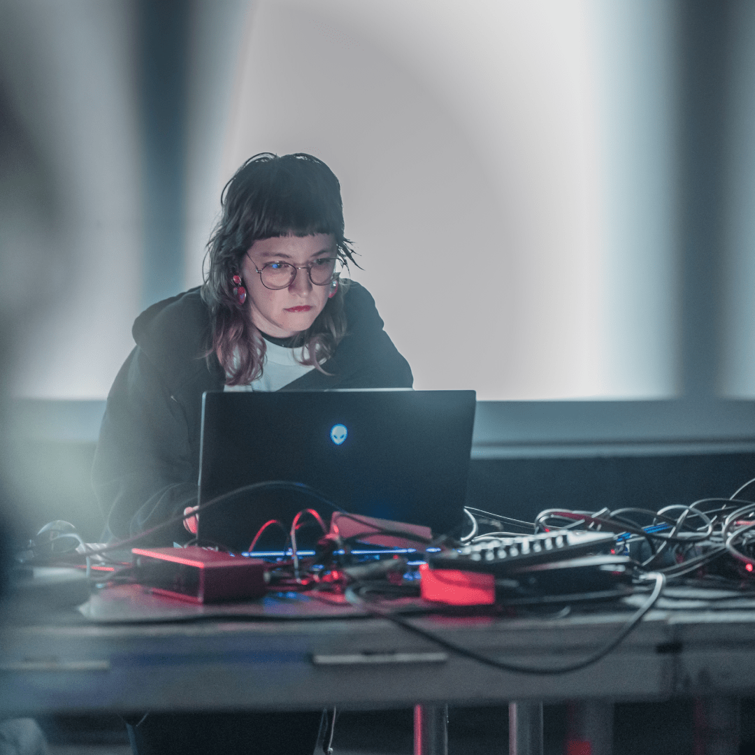 Flor de Fuego is a digital-craft artist who primarily works with programming and live coding to create performative experiences. Her research explores concepts such as the body, space, code, and the chaos-cosmos. She has participated in several international festivals across Europe and the Americas, both individually and in collaboration with other artists. She holds a Bachelor’s degree in Fine Arts from the National University of La Plata, Argentina. Currently she is studying at Klang und Realität master’s program at the Institute of Music and Media, Robert Schumann Hochschule, Düsseldorf, Germany. Flor is actively involved in the live coding community. She is also an active community collaborator for Hydra, a live coding browser-based software developed by Olivia Jack.